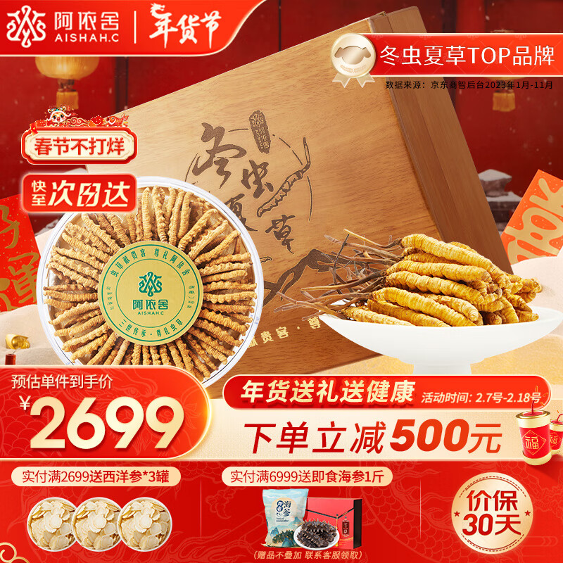 阿依舍 冬虫夏草 新干虫草礼盒装 约4-5根/g 20克装 补品送老人礼品【年货送礼补品】价格:3199.00元!