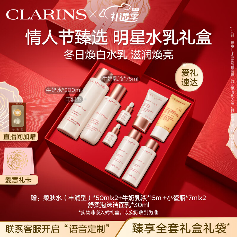 娇韵诗美白牛奶水乳套装滋润型(爽肤水200ml+乳液75ml)护肤品情人节礼盒价格:990.00元!