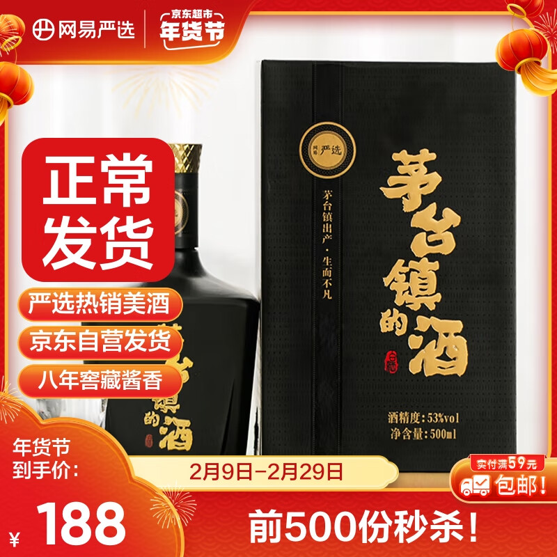 网易严选茅台镇白酒 八年窖藏 酱香型53度 500ml 单瓶装 聚会年货送礼价格:188.00元!