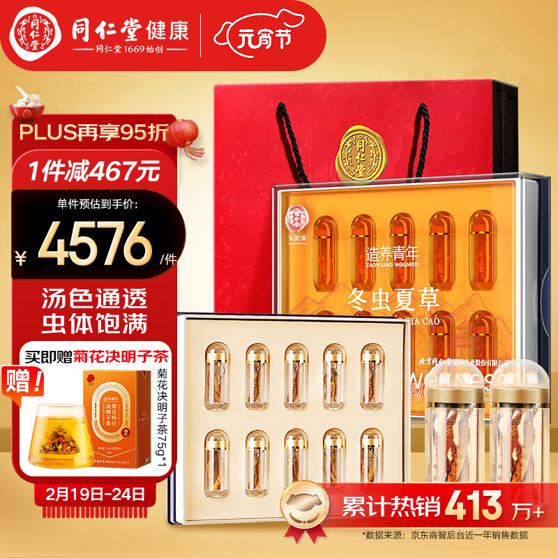 北京同仁堂【元宵节礼品】冬虫夏草-40/10g 虫草礼盒 虫体饱满 洁净度高 可磨粉泡酒 滋补品送父母长辈送礼价格:4567.00元!