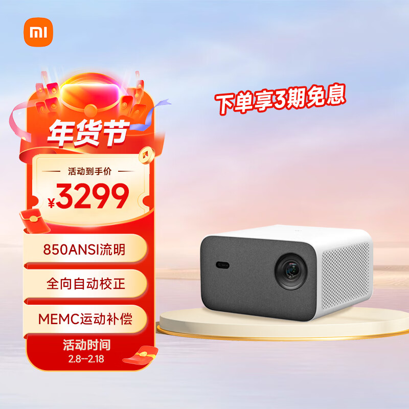 小米投影仪2S 投影仪家用 家庭影院 (MEMC运动补偿、全向自动校正、智能家居互联)价格:3299.00元!