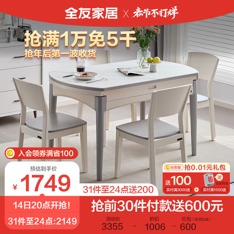 全友家居 餐桌椅 现代简约餐桌椅 可伸缩折叠岩板餐桌DW1028K价格:3355.71元!