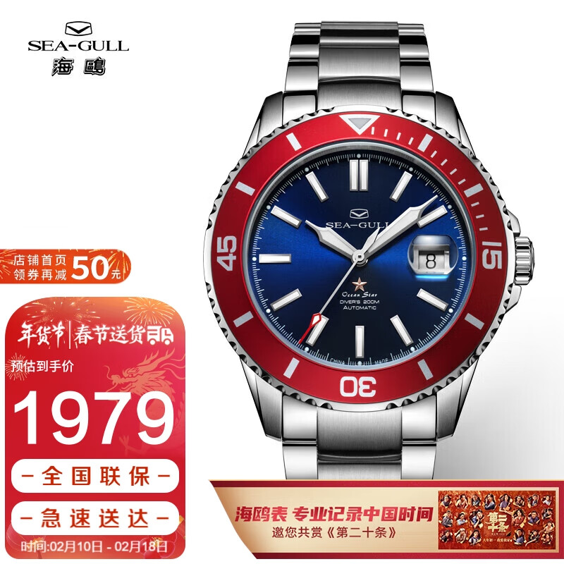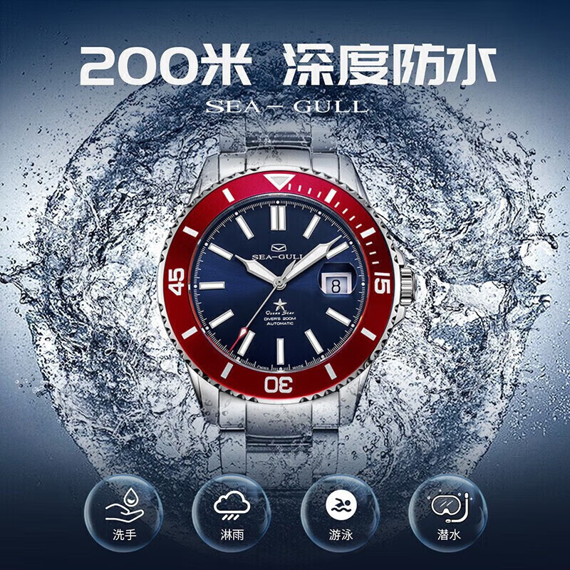 海鸥(SEAGULL)手表男士自动机械表 男表礼物 200米防水潜水表腕表816.92.6113价格:2309.00元!