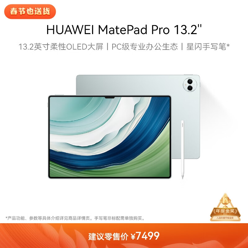 HUAWEI MatePad Pro 13.2英寸 华为平板电脑144Hz OLED柔性护眼屏星闪连接办公创作16+1TB WiFi 雅川青价格:7499.00元!