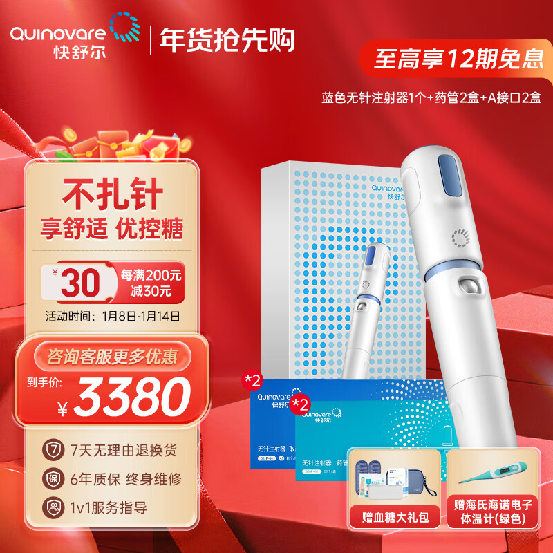 快舒尔无针头胰岛素注射器无痛注射笔免扎针糖尿病人家用医用无针注射器 标配版套餐(2+2蓝色A版)价格:4780.00元!