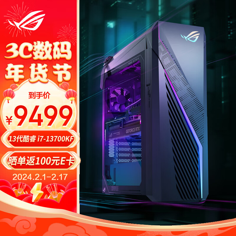 ROG魔霸X 水冷旗舰电竞游戏台式机电脑主机设计师电脑(13代i7-13700KF 16G 1TSSD RTX3070 8G)价格:9499.00元!