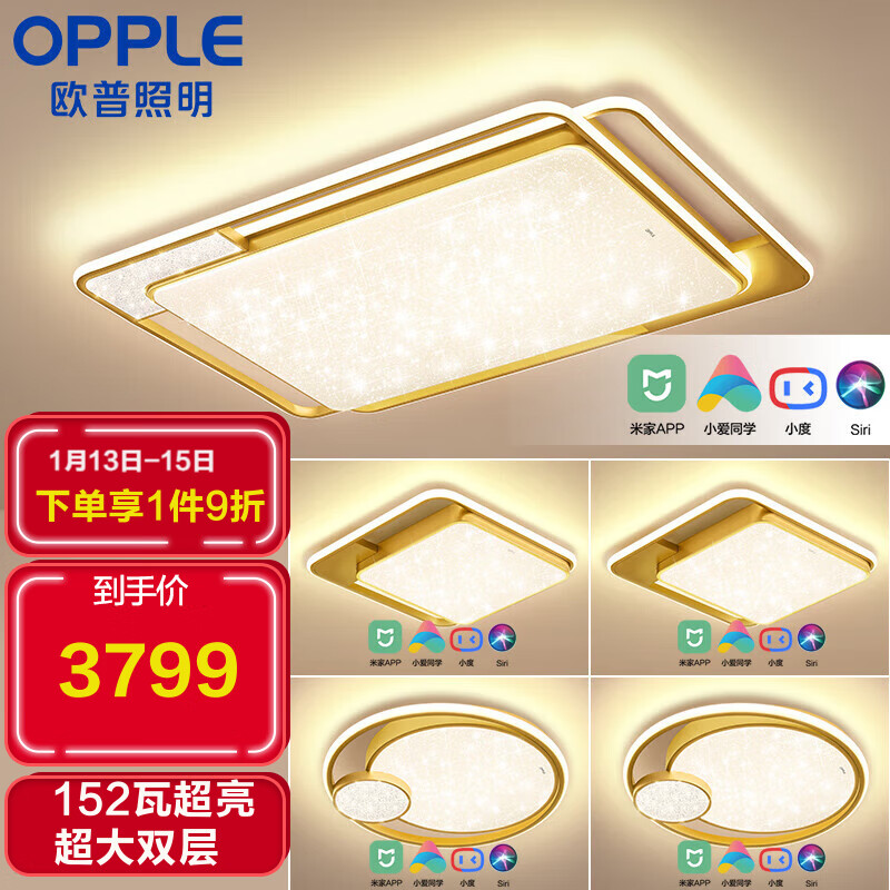 欧普(OPPLE)吸顶灯几何现代简约LED客厅卧室餐厅灯具套餐智能语音调光 套餐7价格:4221.00元!