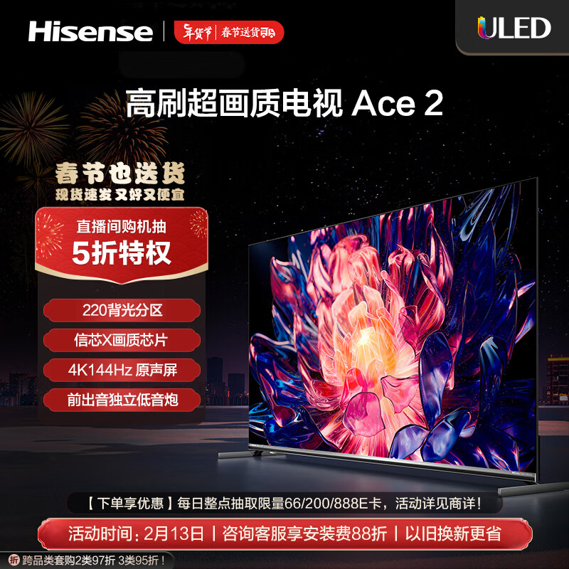 海信电视75E75K 75英寸 220分区 4K144Hz 信芯X画质芯片 智慧屏 液晶智能平板游戏电视机Ace2 以旧换新价格:5699.00元!