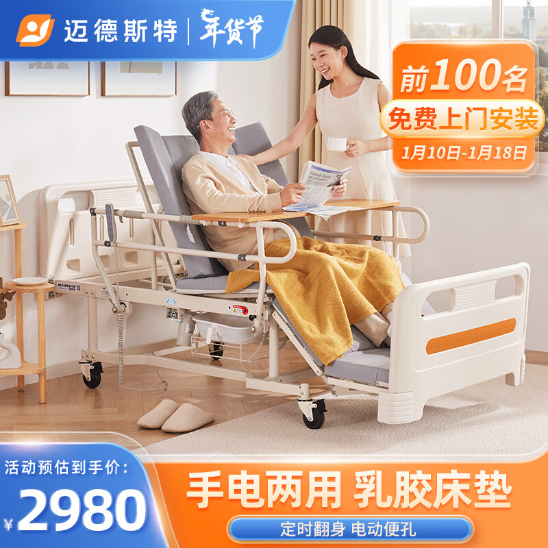迈德斯特电动护理床家用老人瘫痪床可大小便多功能全自动智能翻身医疗医用病床病人专用床E212【乳胶床垫】价格:3980.00元!