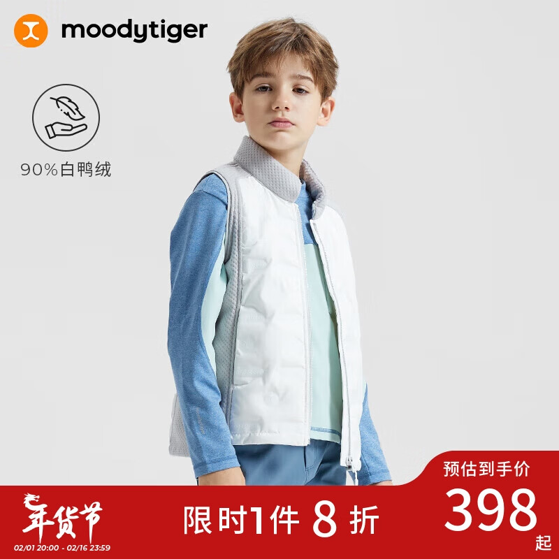 moodytiger儿童羽绒马甲23年秋冬季轻薄款男女童中性外穿羽绒背心价格:498.00元!