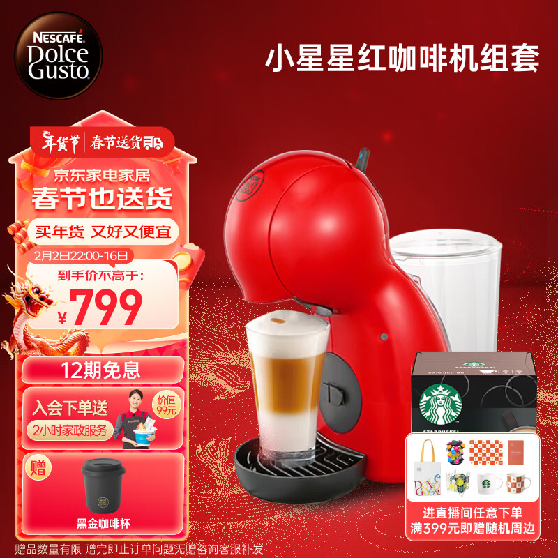 DOLCE GUSTO雀巢 半自动胶囊咖啡机 Piccolo XS红套装 家用 办公胶囊机价格:799.00元!