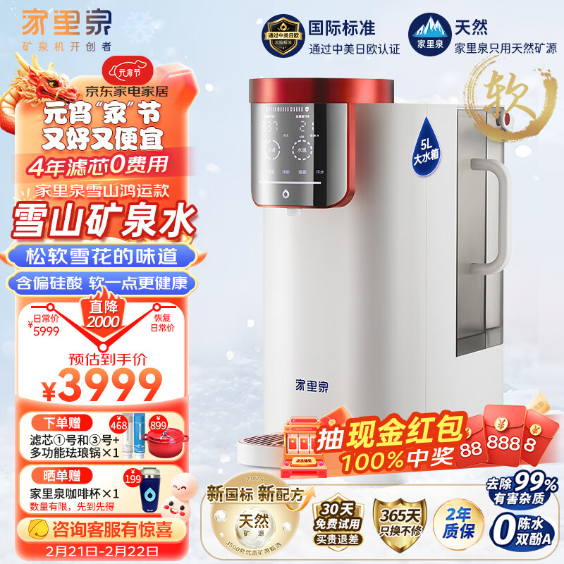 家里泉矿泉机 净水器家用台式加热直饮一体机RO反渗透即热式饮水机免安装净水器雪山矿泉款招财泉价格:3999.00元!