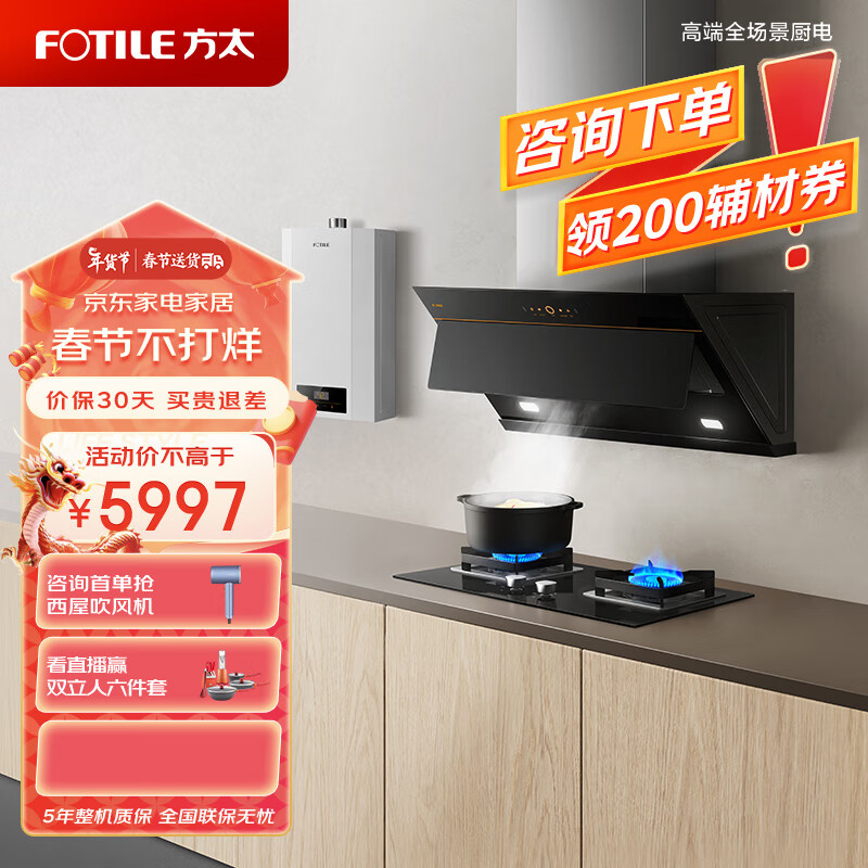 方太抽油烟机 21风量每日换气瞬吸烟机 4.5KW天然气灶 恒温16L热水器 烟灶热三件套JCD7+HT8BE.S+P16D1价格:6197.00元!