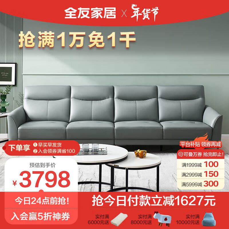 全友家居 真皮沙发 现代简约大小户型头层黄牛皮沙发客厅家具102710B价格:5425.71元!