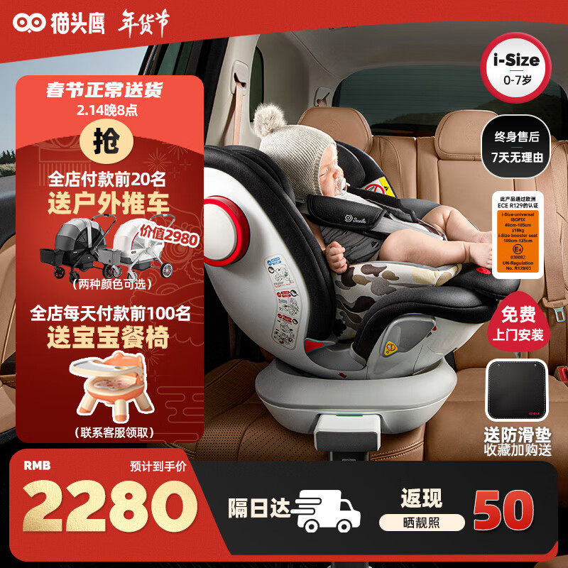 猫头鹰(SAVILE)儿童座椅0-4-7岁360度旋转ISOFIX硬接口M178A妙转PRO深空黑价格:2280.00元!