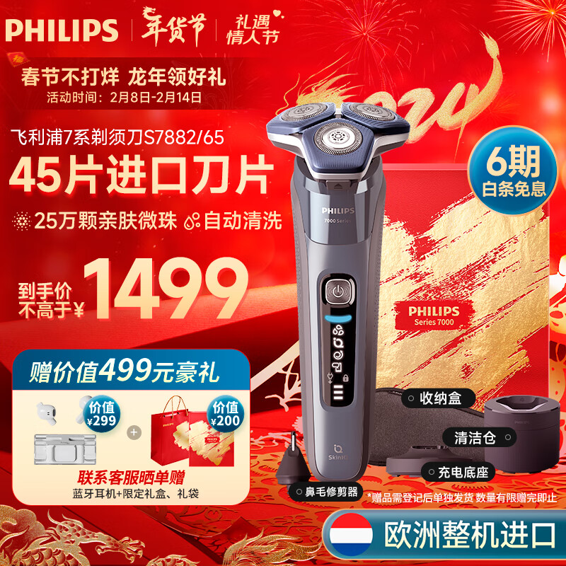 飞利浦(PHILIPS)男士电动剃须刀蜂巢7系Pro+ SkinIQ高端系列刮胡刀 欧洲进口【新年/情人节礼物送男友老公】价格:1699.00元!