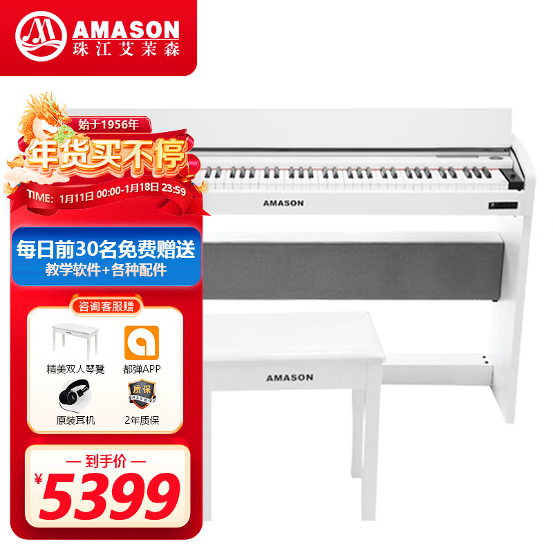 艾茉森(Amason) 珠江钢琴 考级电钢琴88键重锤数码电子钢琴高端手感F13价格:6299.00元!