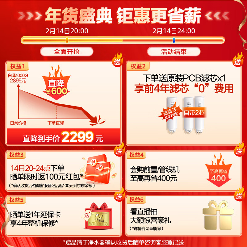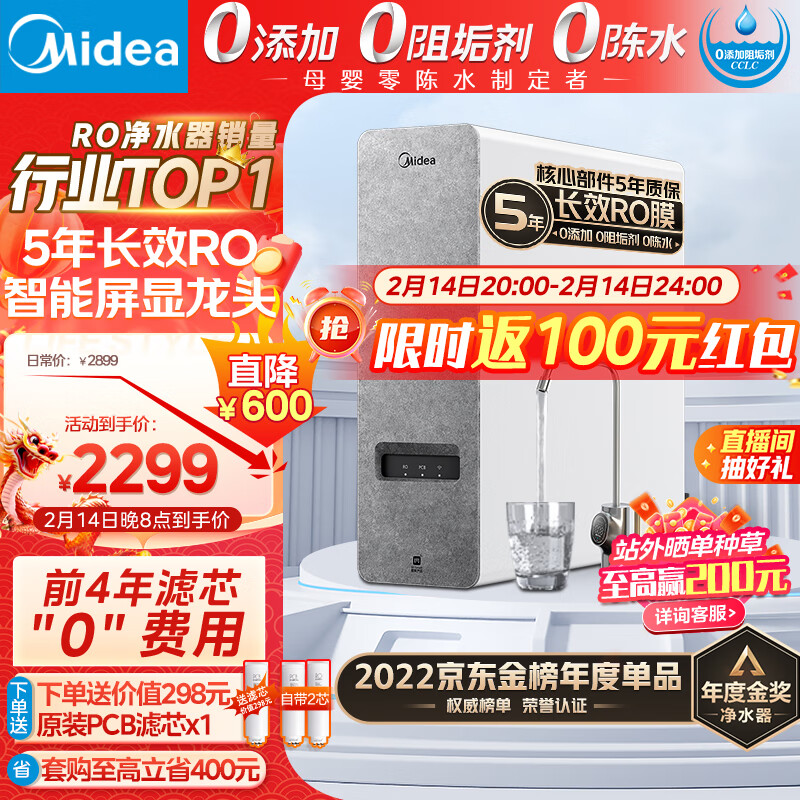 美的(Midea)净水器家用净水机白泽1000G 5年RO反渗透 厨下式净水器过滤器直饮机 0陈水 2.65L/分价格:2499.00元!