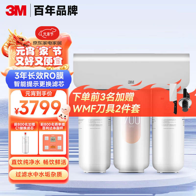 3M净水器家用净水机直饮RO反渗透厨下过滤器700G大通量1.84L/min家用纯水机HFRO-S725价格:4099.00元!