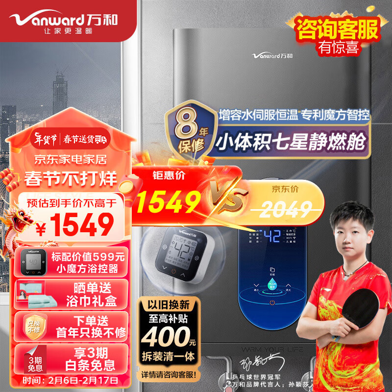 万和(Vanward)16升燃气热水器天然气小体积降噪小魔方智控直流变频水量伺服器恒温一键增容防冻 ME5D16以旧换新价格:2049.00元!