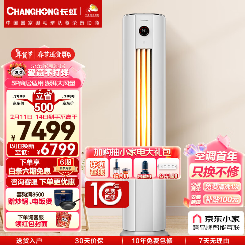 长虹 CHANGHONG 大5匹新能效 冷暖空调立式 0.1度精准控温 立式空调柜机KFR-120LW/ZDTTW2+R2以旧换新价格:7499.00元!