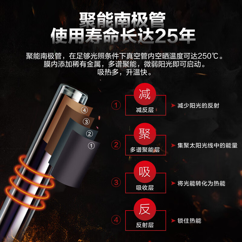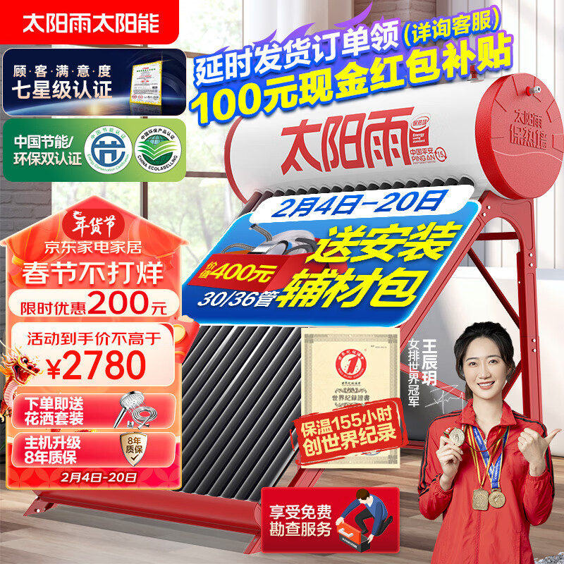 太阳雨 (Sunrain)太阳能热水器家用保热墙一级能效 A无电系列18管140L价格:2980.00元!