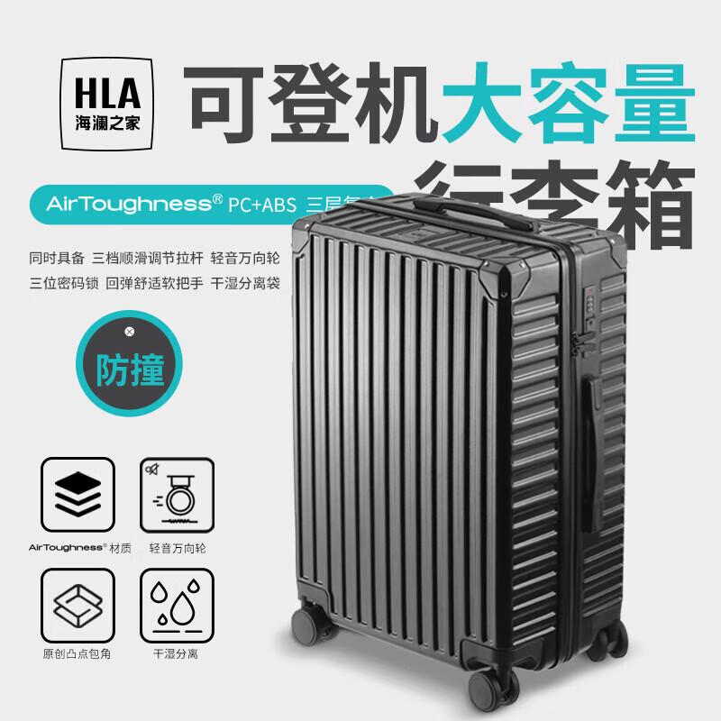 海澜之家(HLA)行李箱男学生拉杆箱女旅行登机密码托运皮箱密码箱 曜石黑20英寸价格:199.00元!