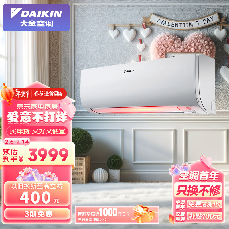 大金空调 14-19㎡适用 新三级能效 大1.5匹 变频 冷暖 家用 壁挂式 以旧换新 FTXJ336WC-W价格:3979.00元!