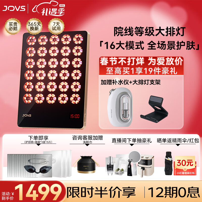 JOVS大排灯美容仪红蓝黄6种光修护舒缓亮肤光子嫩肤仪 家用面部全身可照生日新年礼物送女生黑耀金价格:2299.00元!