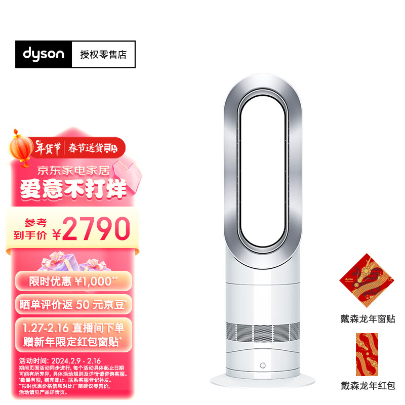 戴森(DYSON)戴森AM09无叶暖风扇 兼具冷风暖风功能 无叶设计四季适用 台立两用 白镍色价格:2790.00元!