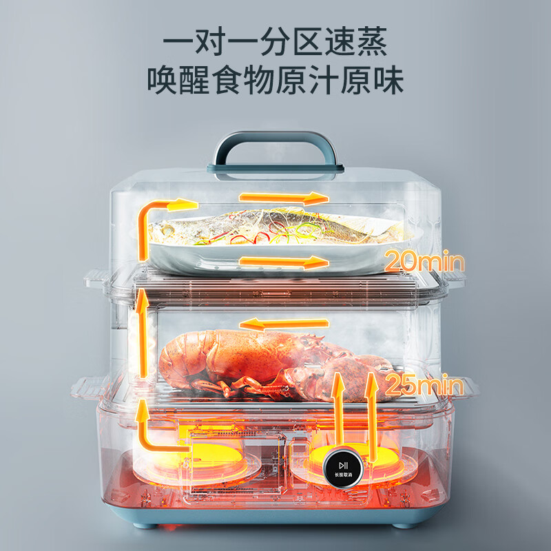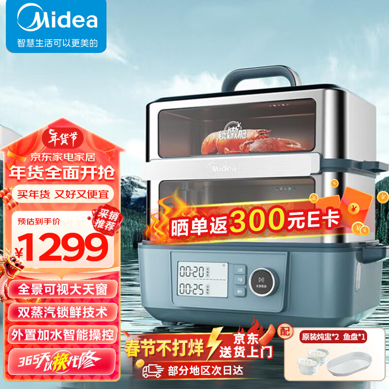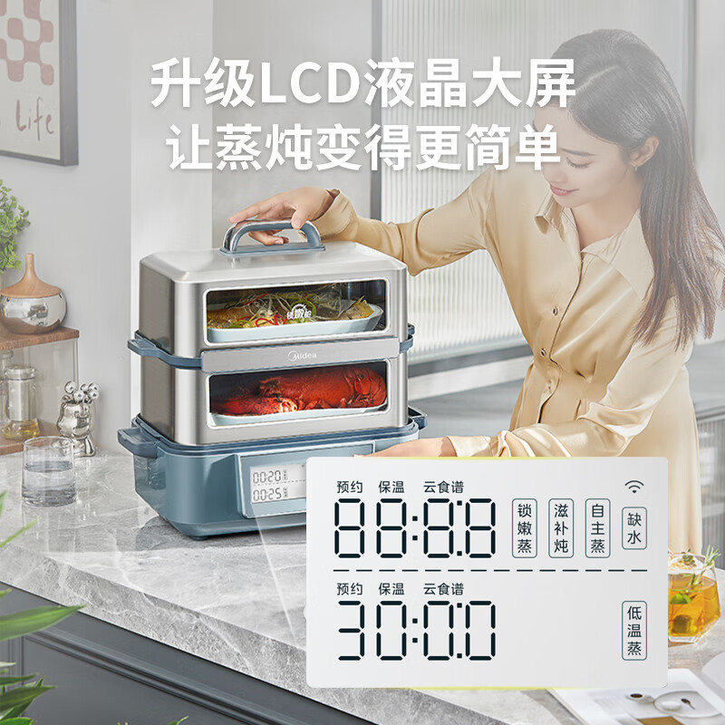 美的(Midea)锁嫩舱3.0家用电蒸锅智能烹饪多功能锅可视分区一锅多用不锈钢蒸炖锅锁嫩舱多用途锅MZ-ZGS352202价格:1299.00元!