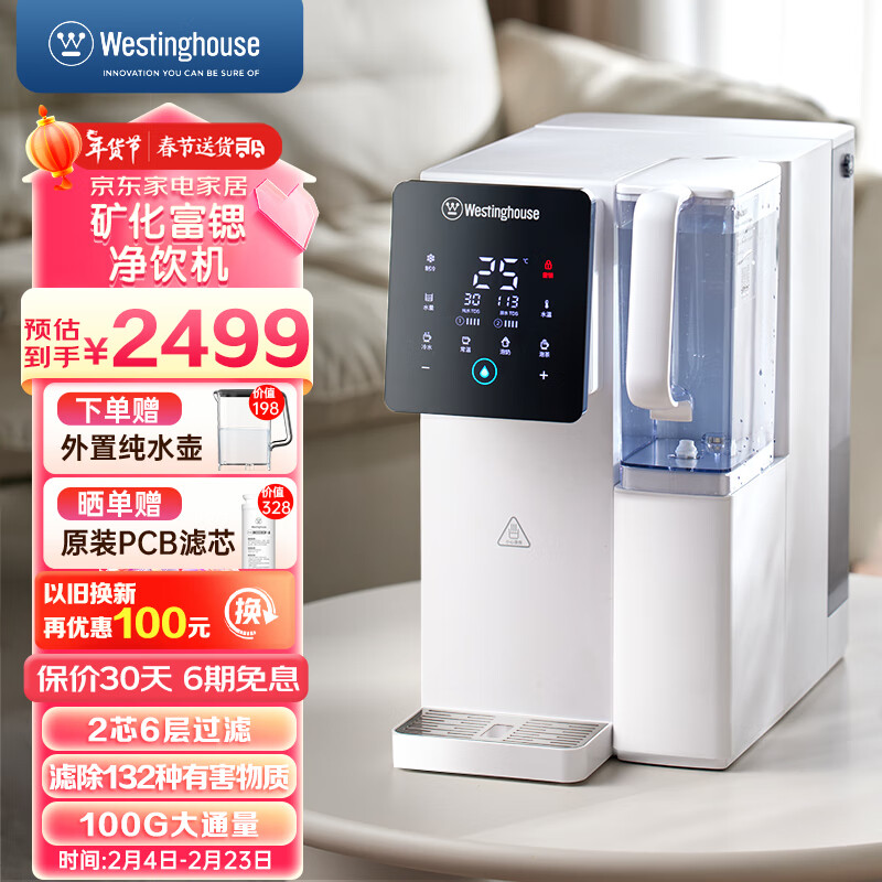 西屋(Westinghouse)台式即热免安装净饮一体机家用 RO反渗透净水器 加热直饮机 桌面即热式饮水机 C5白色富锶版价格:2499.00元!