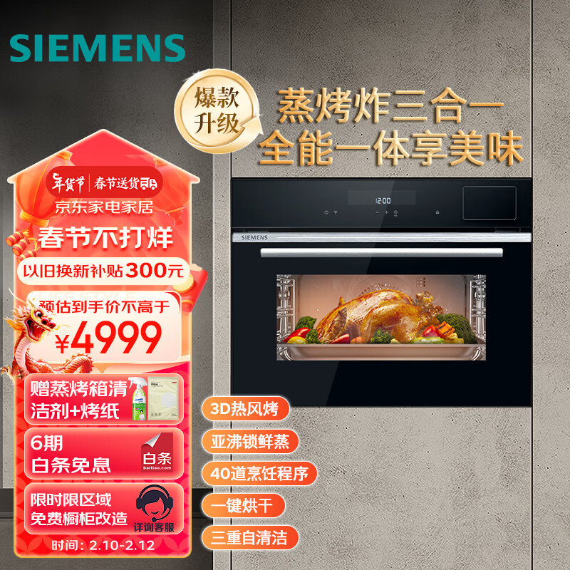 西门子(SIEMENS)嵌入式蒸烤炸一体机 自清洁 烤箱 蒸箱 热风炸 家用蒸烤箱 CS589ABS6W价格:5199.00元!