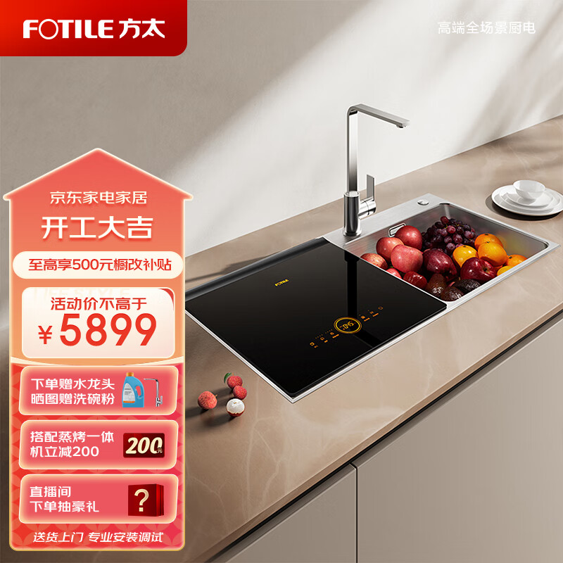 方太(FOTILE)水槽洗碗机家用 高能气泡洗 洗碗不弯腰 WiFi智控 超薄门板水槽一体嵌入式JPSD2T-02-C4JL.i价格:5899.00元!
