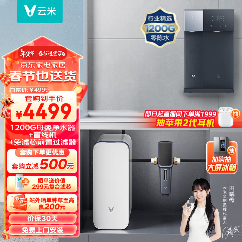 云米(VIOMI)Super Y 1200G全屋净水套装净水器+冷热管线机Master 3+前置过滤器VF4三件套家用加热净水器净水机价格:4999.00元!