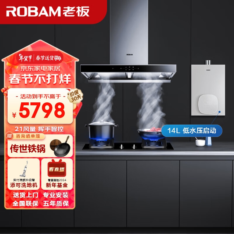 老板(Robam)厨房多件套抽油烟机双腔欧式顶吸21风量免拆洗家用吸油烟机灶具燃气热水器60A1+30B6DT+HT322A-14价格:5798.00元!