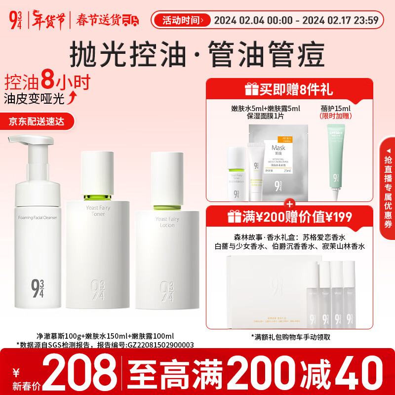 934酵母控油护肤套装水乳清爽补水收敛毛孔新年礼物男女适用 【进阶2.0】慕斯+酵母嫩肤水+露价格:238.00元!