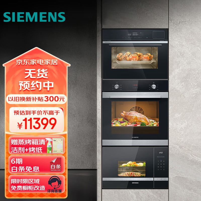 西门子(SIEMENS)微蒸烤箱套装 欧洲原装进口烤箱+国产嵌入式蒸箱+微波炉 自清洁HB313+CD289+BE525价格:15999.00元!
