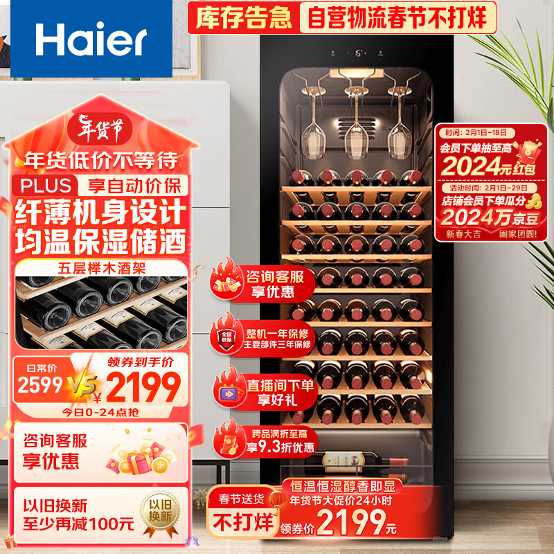 海尔(Haier)52瓶装恒温红酒柜 客厅办公室葡萄酒冷藏家用酒柜WS052WGHUD1价格:2299.00元!