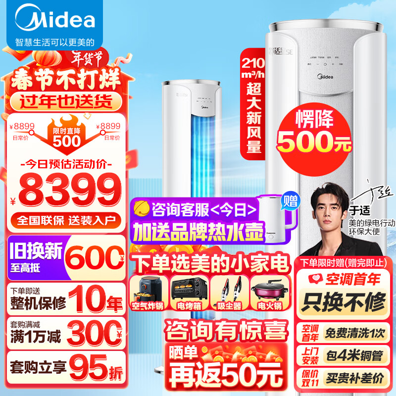 美的(Midea)舒适星SE 大2匹 新一级变频冷暖 换新风无风感 家用圆柱立式空调柜机 KFR-51LW/K1-1A 以旧换新价格:8399.00元!