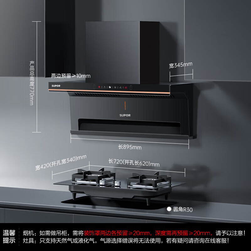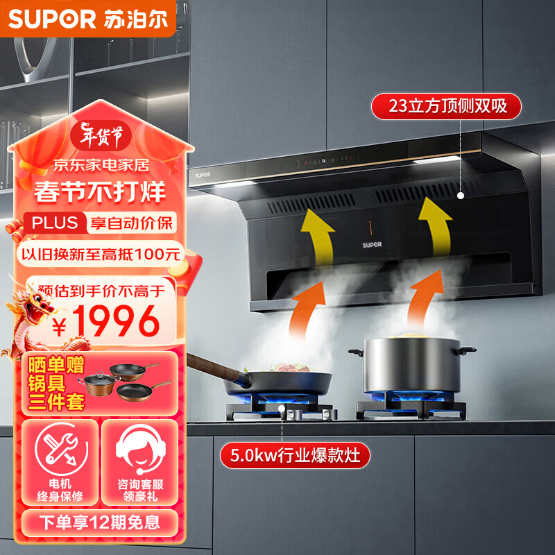 苏泊尔(SUPOR) 抽油烟机 顶侧双吸7字型烟灶套装23立方挥手免拆洗家用烟机燃气灶具套装DE15+Q5天价格:2096.00元!