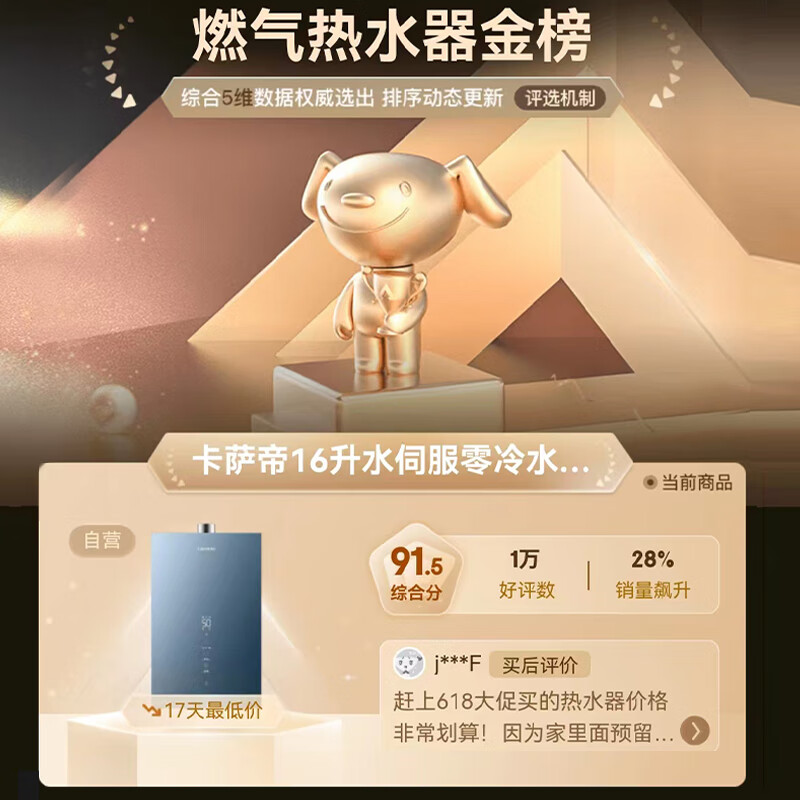 4、卡萨帝16L燃气热水器,颜值高,操作简单,功能实用。下单前跟客服询问了许多关于零冷水的问题,客服特别有耐心,详细解答了我的所有疑虑,配送以及安装师傅也都特别认真负责,非常满意的一次购物体验