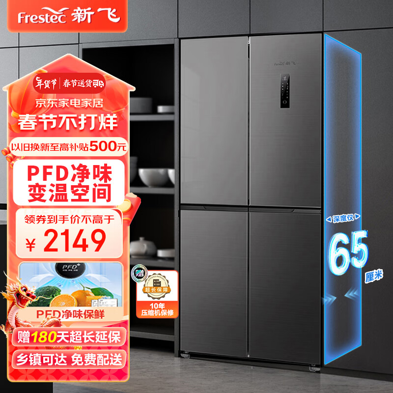 新飞(Frestec)442升超薄可嵌入十字四门风冷无霜变频一级电脑控温大容量存储净味冰箱 BCD-442WK8DT价格:2149.00元!