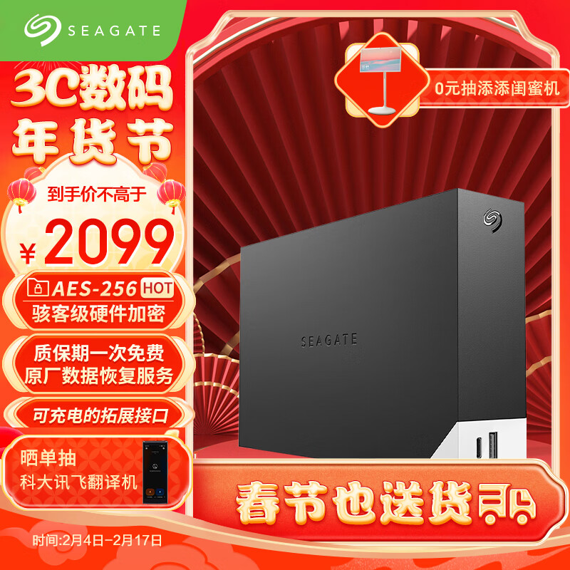 希捷(seagate)桌面移动硬盘12TB USB HUB 3.5英寸 大容量存储 自动备份 兼容MAC 原厂数据恢复服务价格:2099.00元!