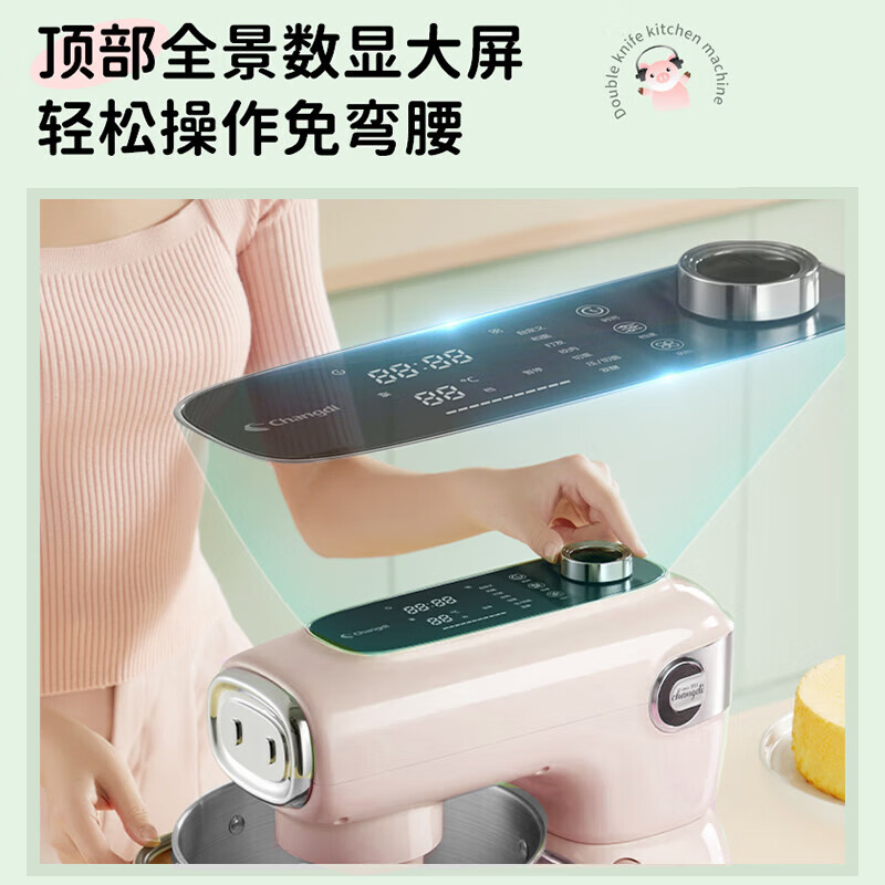 长帝(changdi)家用厨师机多功能和面机 双刀全自动揉面机 顶部大屏触控 直流电机轻音面包机 C6小奶猪 冰莓粉价格:1549.00元!
