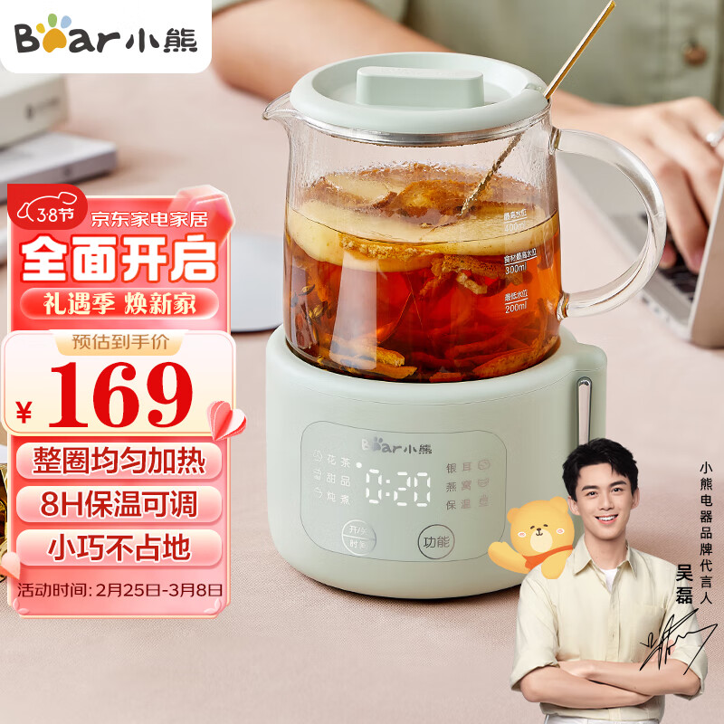小熊(Bear)迷你养生壶养生杯 电炖杯电热杯煮花茶壶烧水壶办公室杯子0.4L全玻璃杯体YSH-F04E1 送礼推荐价格:169.00元!