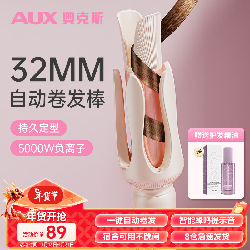 奥克斯(AUX)自动卷发棒负离子防烫卷发神器全自动懒人卷发器女士32MM大卷波浪卷烫发棒斜刘海夹价格:88.00元!
