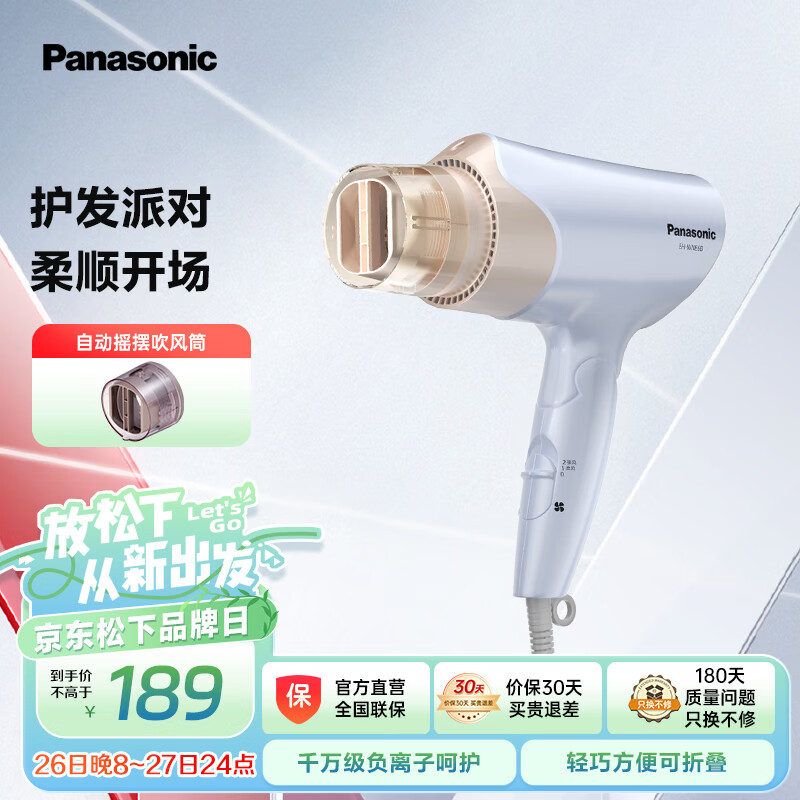 松下(Panasonic)电吹风机家用大功率高速大风力速干折叠便携家用 老婆女友吹发负离子护发风筒EH-WNE6B紫价格:189.00元!