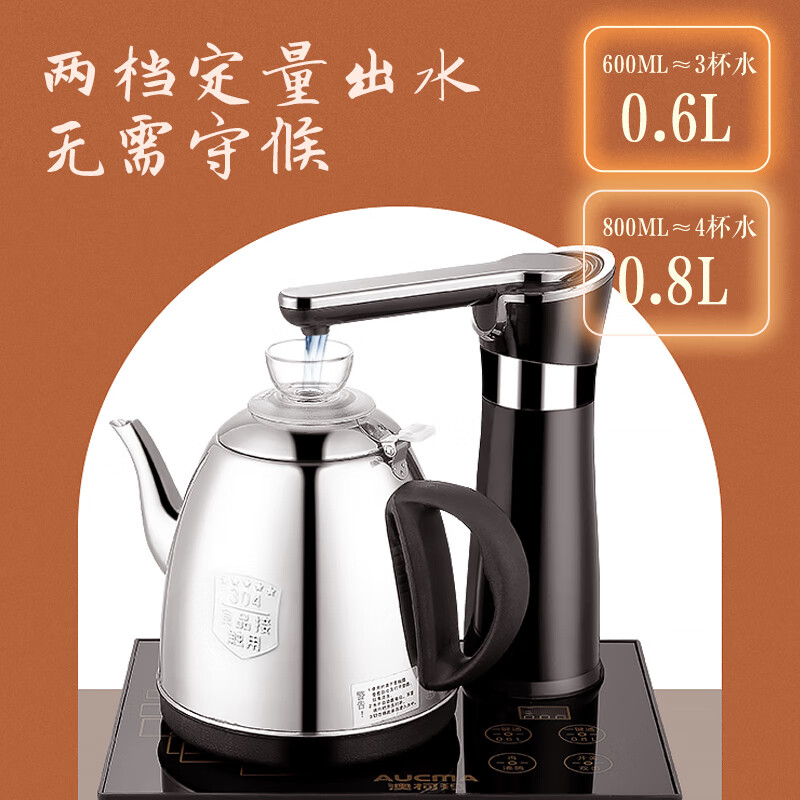 澳柯玛(AUCMA)自动上水电热水壶 304不锈钢/煮茶器功夫茶具茶台泡茶/电茶炉烧水壶0.8L电水壶 黑色J1送礼长辈价格:149.90元!