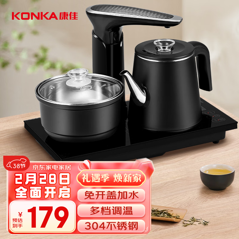 康佳(KONKA)电水壶全智能自动上水茶盘养生水壶电茶壶煮茶器自动茶具电茶炉茶具茶台烧水壶 KEK-W0855价格:179.00元!